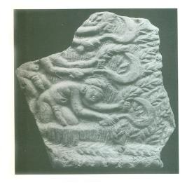 | Description / विवरण | The female deity with a bicornate headgear and grains of corn stuck on either side of the headdress. The headdress is bejewelled while the divinity is adorned with a girdle, bangles and a beaded ornament running down her torso. She is clad in diaphanous garments. The emphasis laid in delineating her reproductive organs and the ears of corn decorating her headgear may have she is the goddess of vegetation, fertility and prosperity. |