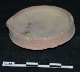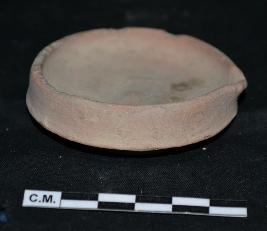 | Description / विवरण | This terracotta lamp circular flat in shape with round smallest edge is visible. |