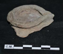 | Description / विवरण | This is a terracotta lamp. circular border is visible on the upper portion. Small knoch is also visible. |
