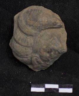 | Description / विवरण | The broken head of male figure wearing elaborate headgear and earrings. He is having sharp eyes, long nose and parted lips. |