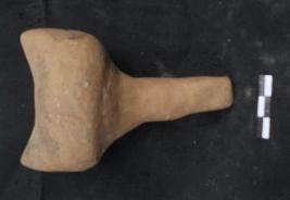 | Description / विवरण | This terracotta object with long handle may be identified as playing object. |