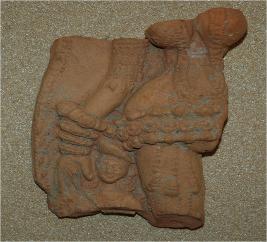 | Description / विवरण | Fragment of a plaque depicts female torso.The lady is in standing posture,wears a decorated waistband and bangles in the hand. |