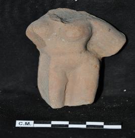 | Description / विवरण | A broken terracotta plaque depicts a female figure in standing posture. |
