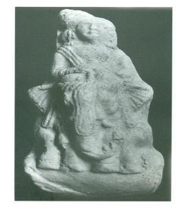| Description / विवरण | A toycart representing a man riding on an elephant. He holds an ankush in his right hand. He wears a conical turban, ear ornaments and bracelet. The elephant wears a headband with bells hanging from both sides. There have been attempts to identify this form as Indra or proto Indra. |