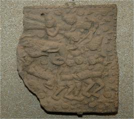 | Description / विवरण | The narrative plaque depicts five male figures in standing posture and holding an unidntified thing.An elephant is also visible. |
