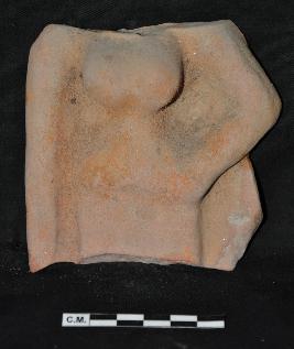 | Description / विवरण | A terracotta plaque depicts a female figure in standing posture . Her left hand rests on her waist . |