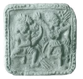 | Description / विवरण | The plaque in low relief depicts a male musician playing harp or a vina and a female dancer accompanying him. Thematically this plaque corresponds to similar plaques from Tamluk and Eastern India now in the collection of Samuel Eilenberg, Poster, 1986, p.15 . The male musician s asymmetrical headgear is typical of Chandraketugarh. The flattened treatment of the human body in the plaque and the awkwardly projecting limbs are visually conspicuous. It is more archaic with the female dancer s arms projecting awkwardly in sharp angles from the body. |