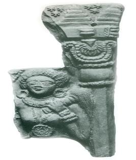 | Description / विवरण | A broken plaque depicting only the attendant figure standing under a pavallion. The female attendant figure holds a chauri in her left hand. She wears earrings, a necklace with a medallion, torque and bracelets. The architecture is prominent with its octagonal pillar with a decorated capital. Triangular turrets can be seen on the top of the pavallion. |
