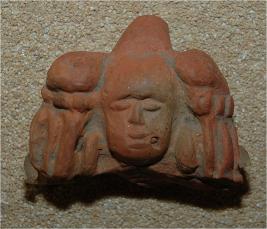 | Description / विवरण | The terracotta plaque depicts a male head with closed eyes, blunt nose and parted lip. |