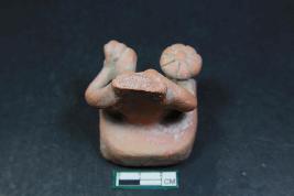 | Description / विवरण | Fragmentary female figurine in a sitting posture placed on a rectangular pedestal with prominent bust, right hand holding fully bloomed lotus marked by incised petals and right hand holding unidentified object having smooth surface. |