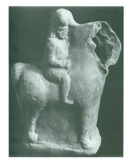 | Description / विवरण | This round portrays a horse with its rider. A terracotta from Raighat dated to the 5th centuriy A.D poster, 1986, p.151 represents a similar theme, but its execution is far less sophisticated and it resembles the votive objects offered in shrines of village deities. |