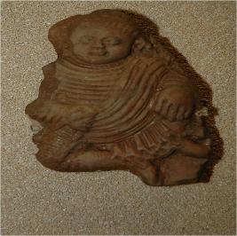 | Description / विवरण | This is representation of a male figure in seated posture with prominent eyes, blunt nose and parted lip. |