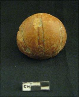 | Description / विवरण | A red coloured terracotta ball broken in two parts. |