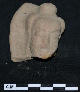 | Description / विवरण | The fragment of plaque depicts a terracotta female figure with trefoil coiffure. |