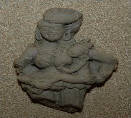 | Description / विवरण | The terracotta figure depicts a mother and child in standing posture with sharp eyes, long nose and parted lip.Mother is highly ornamented with earrings,girdle,bangles,headdress and waistband.The child is also ornamented and seated left lap of her mother. |
