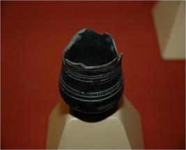 | Description / विवरण | A black slipped small vase with fine texture and fine fabric.geometric designs are visible in the outer surface. |