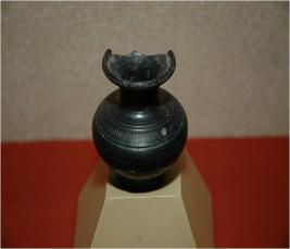 | Description / विवरण | A black slipped storage jar with fine texture and fine fabric.geometric designs are visible in the outer surface. |