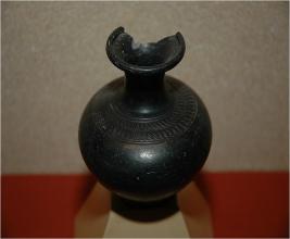 | Description / विवरण | A black slipped storage jar with fine texture and fine fabric.Cord impressions are visible in the outer surface. |