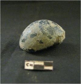 | Description / विवरण | A black coloured terracotta ball broken from the middle. |
