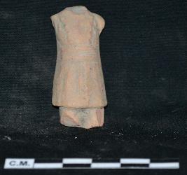 | Description / विवरण | The terracotta plaque represents male fgurine in standing posture wearing long garments with waist belt. |