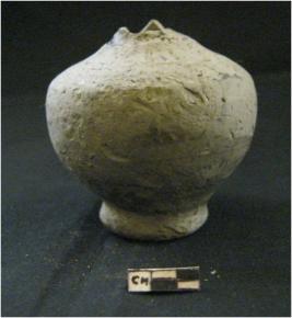 | Description / विवरण | A grey coloured miniature pot , broken from the rim . |