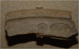 | Description / विवरण | Rim portion of a red coloured pot depicts lotus and illegible script in the outer surface.It is having medium texture and medium fabric. |