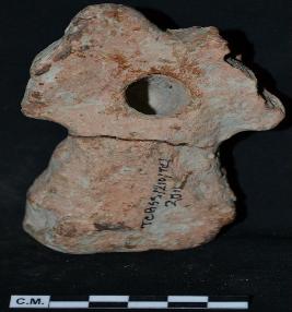 | Description / विवरण | Terracotta object depicts a head of a ram with lotus ornamentation on it. |