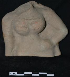 | Description / विवरण | The broken plaque depicts a female in standing posture and her left hand rests on the waist. |