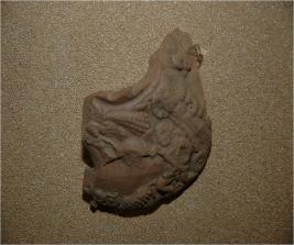 | Description / विवरण | Body portion of a red coloured pot depicts male and female figure,beaded and floral designs in the outer surface.It is having medium texture and medium fabric. |