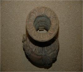 | Description / विवरण | A red coloured storage jar intact in condition ,depicts floral, vegetal and beaded decoration in the body and rim portion. |