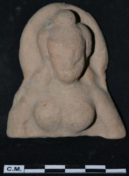 | Description / विवरण | A broken plaque depicts yaskhini in standing posture with totally eroded face. The figure is having circular knot on head and earrings. |