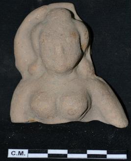 | Description / विवरण | The terracotta plaque depicts female bust with trefoil coffure on her head. She is wearing earrings. |