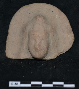| Description / विवरण | Terracotta plaque depicts a male headwith blunt nose and knot on his head. |