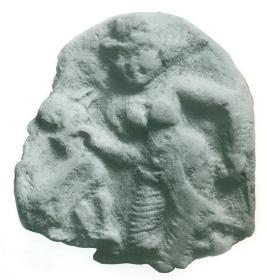 | Description / विवरण | A small circular plaque depicts a female figure stroking a bird s neck. Probably this is the portrayal of an early narrative. Representation of such narratives was extremely popular in Chandraketugarh. |