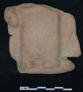 | Description / विवरण | Terracotta plaque depicts a fragmented portion of human figure on standing posture with elogated dress. Foot are visible. |
