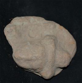 | Description / विवरण | A broken plaque depicts a head with eroded face.The figure is having knot on head and earrings. |