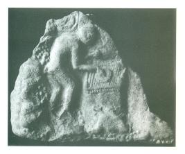 | Description / विवरण | A fragment of a plaque depicting a narrative. In the fragment available one sees a man stooping before an altar or vedi. Does this depict a sacrificial ritual The plaque has been delineated in high relief with details carefully represented. |