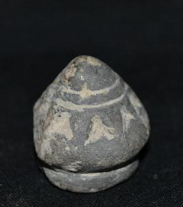 | Description / विवरण | This is a representation of hand modeled terracotta game object, popularly known as Bore , black in colour, with geometric design . |
