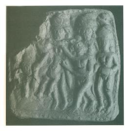 | Description / विवरण | The plaque depicts a man riding a horse. He turns back to talk to four follower on foot. Among these followers is one who is probably holding a rope or a rein. All are turbaned. |