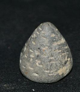 | Description / विवरण | This is a representation of hand modeled terracotta game object, grey in colour. The object is filled with dotted design. |