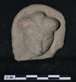 | Description / विवरण | Terracotta plaque depicts head of Yakshni with trifoil coffure. Lower portion of a plaque is broken. |