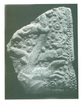 | Description / विवरण | Hunting scene was a popular theme at Chandraketugarh. The present plaque depicts an antelope and a hyena like creature being chased by a tusker. The intricate details of the foliage have been rendered with care. |