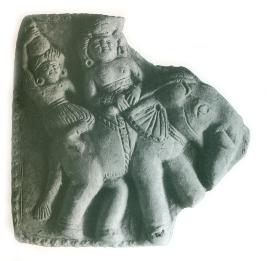 | Description / विवरण | The plaque depicts two riders on a carefully saddled elephant. The rider on the rear seems to be holding a small sack or a pitcher on his head. Both the figures are similarly attired with a pleated lower garment and round earrings as ornaments. This may have been a visual elaboration of an earlier unidentified narrative. |