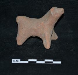 | Description / विवरण | This terracotta figurine depicts a dog with small tail and slightly upraised head with slit lip |