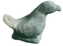 | Description / विवरण | This is yet another illustration of a toy from early Chandraketugarh. This is a bird in the round created with the help of double moulds. It probably depicts a dove and was used as a rattle for children. |