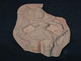 | Description / विवरण | A plaque depicting a yakshini with five auspecious hairpins. She is heavily ornamented with earings, necklaces, bangles, gardle etc. |