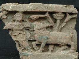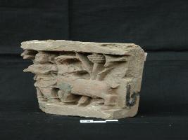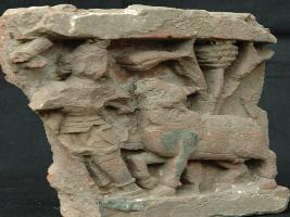 | Description / विवरण | The plaque depicts lord Krishna in a meadow, is wearing Dhoti , garland and having knot on head. A cow is standing beside his right side. |