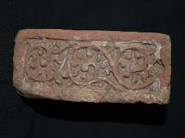 | Description / विवरण | The temple terracotta plaque designed with creeper work. |