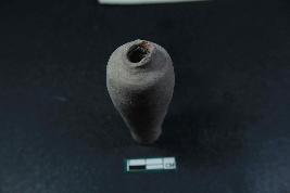 | Description / विवरण | Fragmentary Miniature Pot with broken rim, elongated profile along with mild tapering and flat base having smooth surface. |