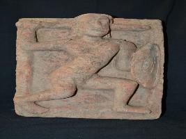| Description / विवरण | The temple terracotta plaque depicts warrior having shield and sword in his hand. He is having waist band, necklace. |